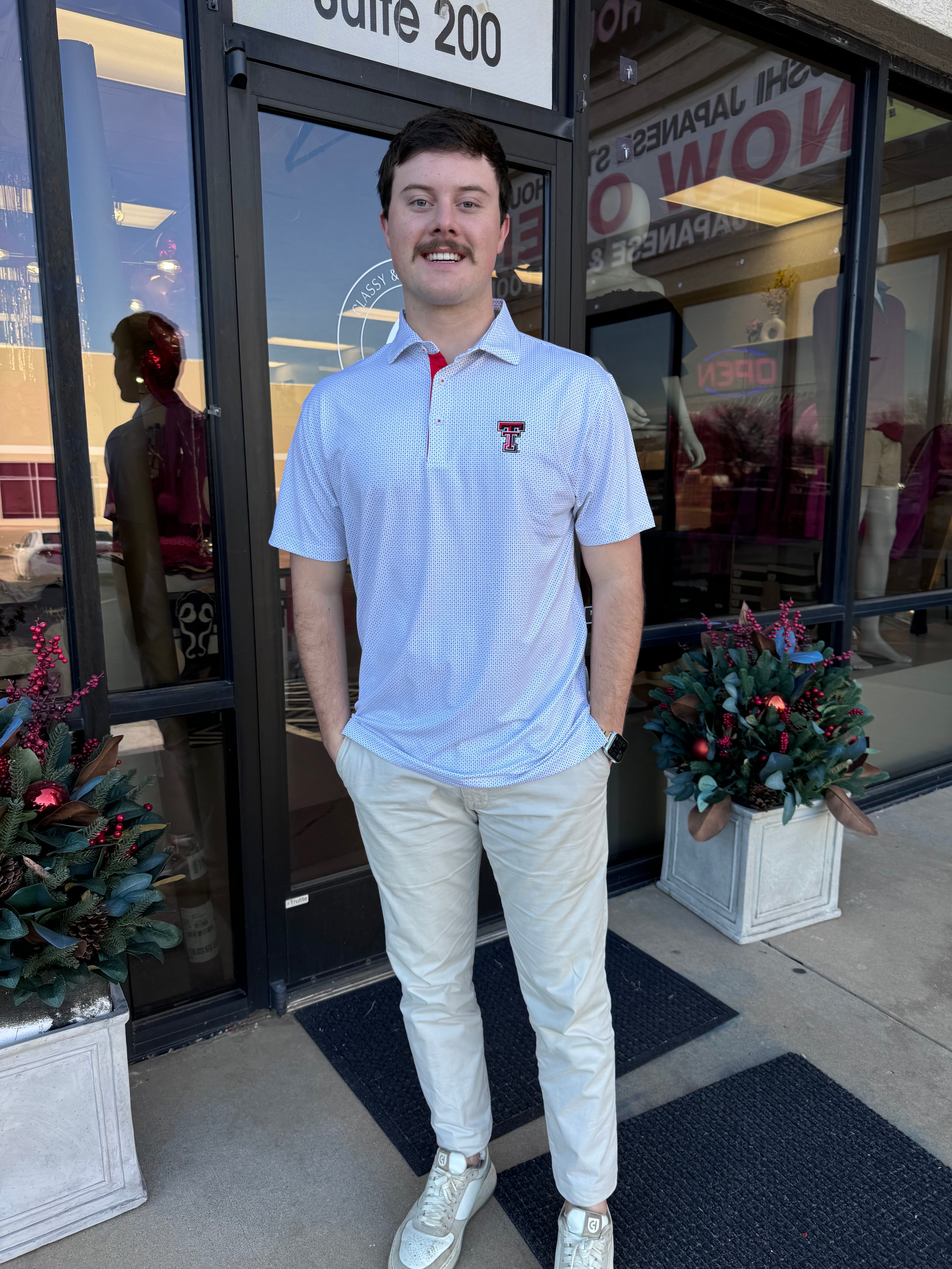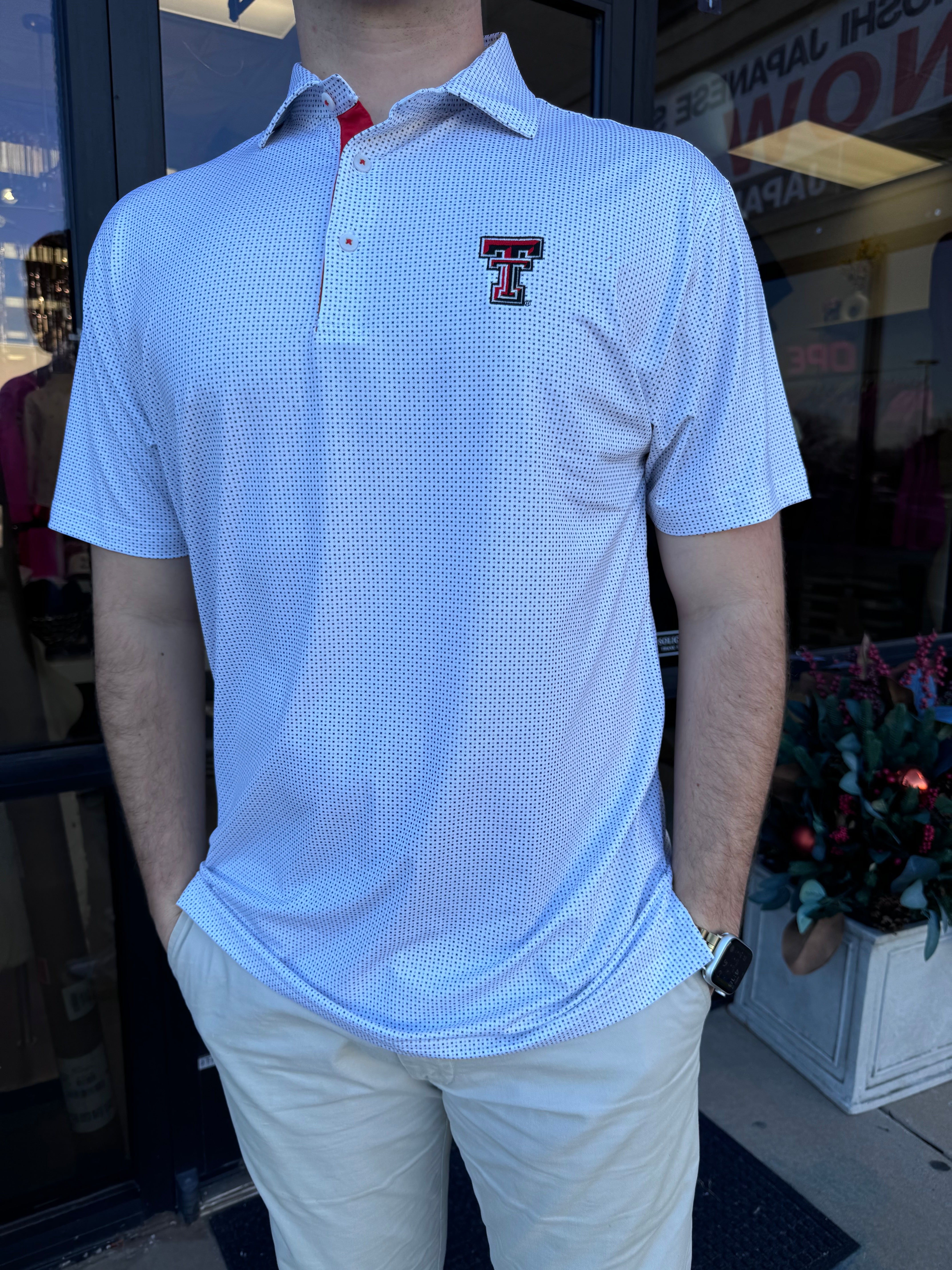 HORN LEGEND- WHITE TTU LOGO POLO