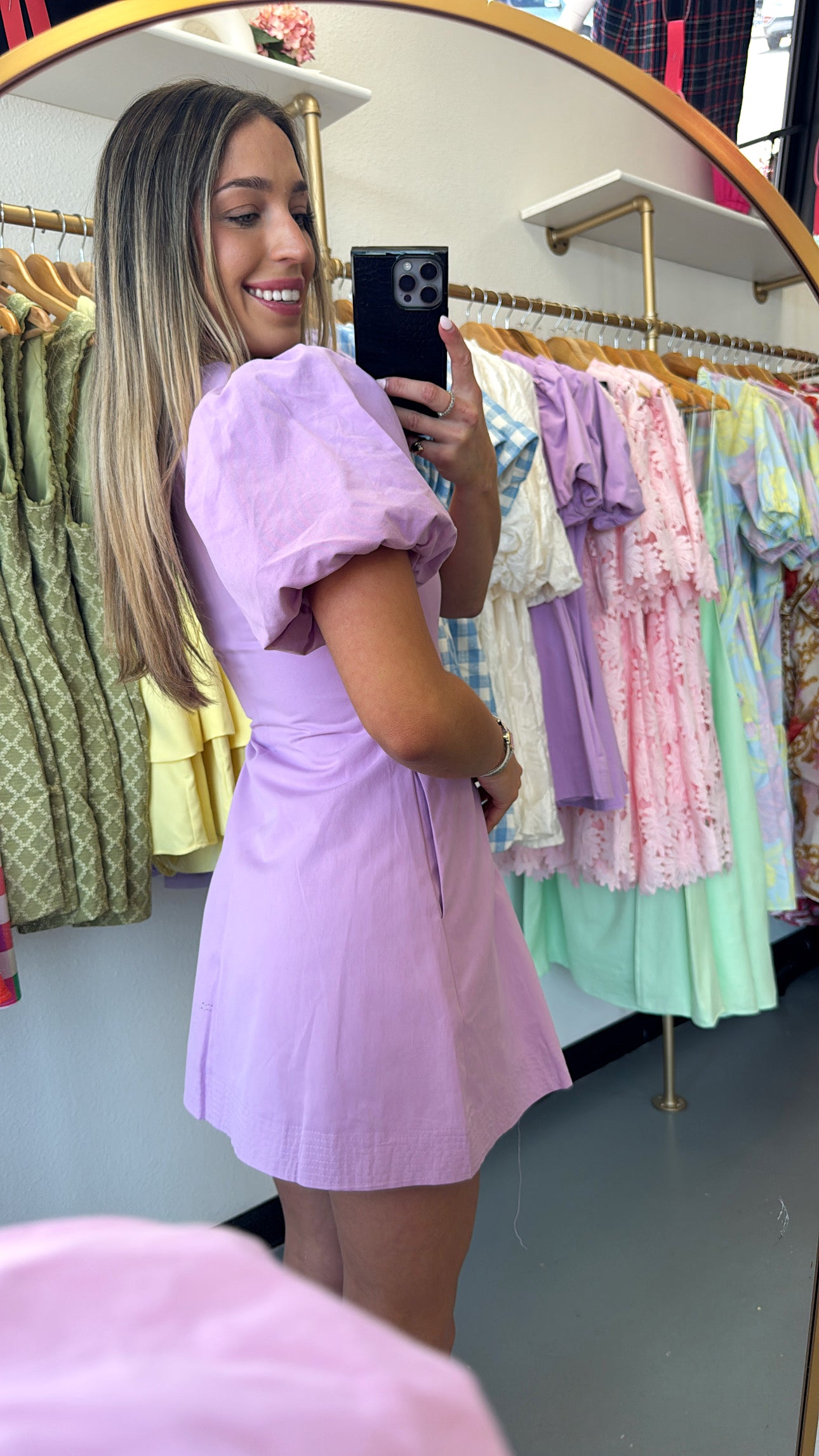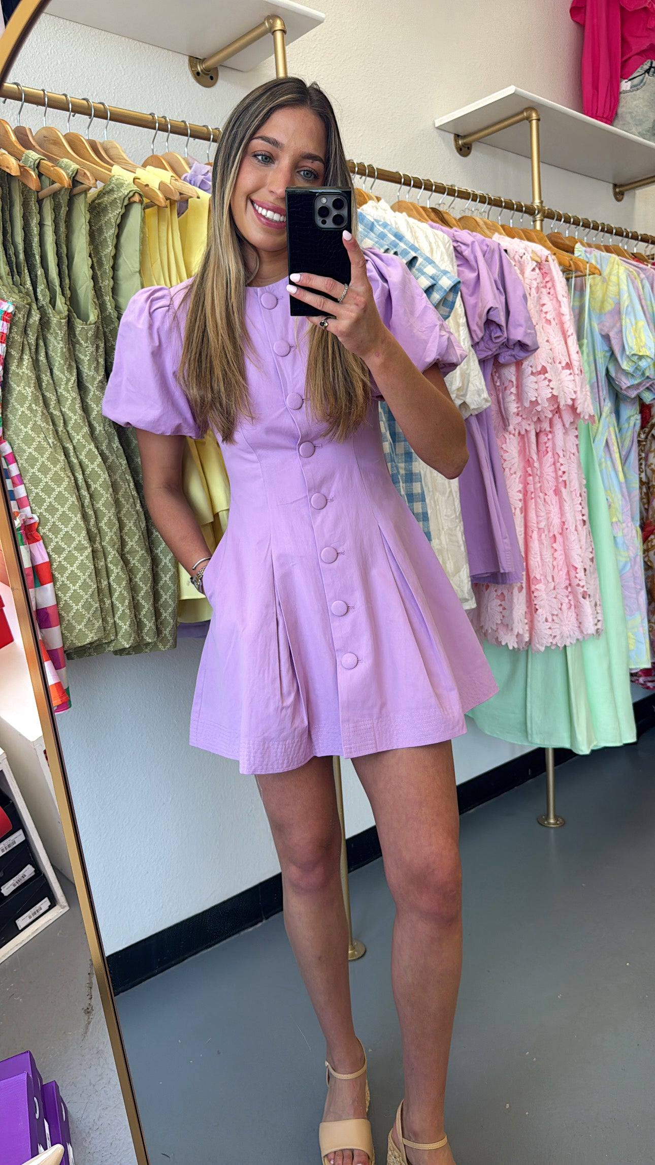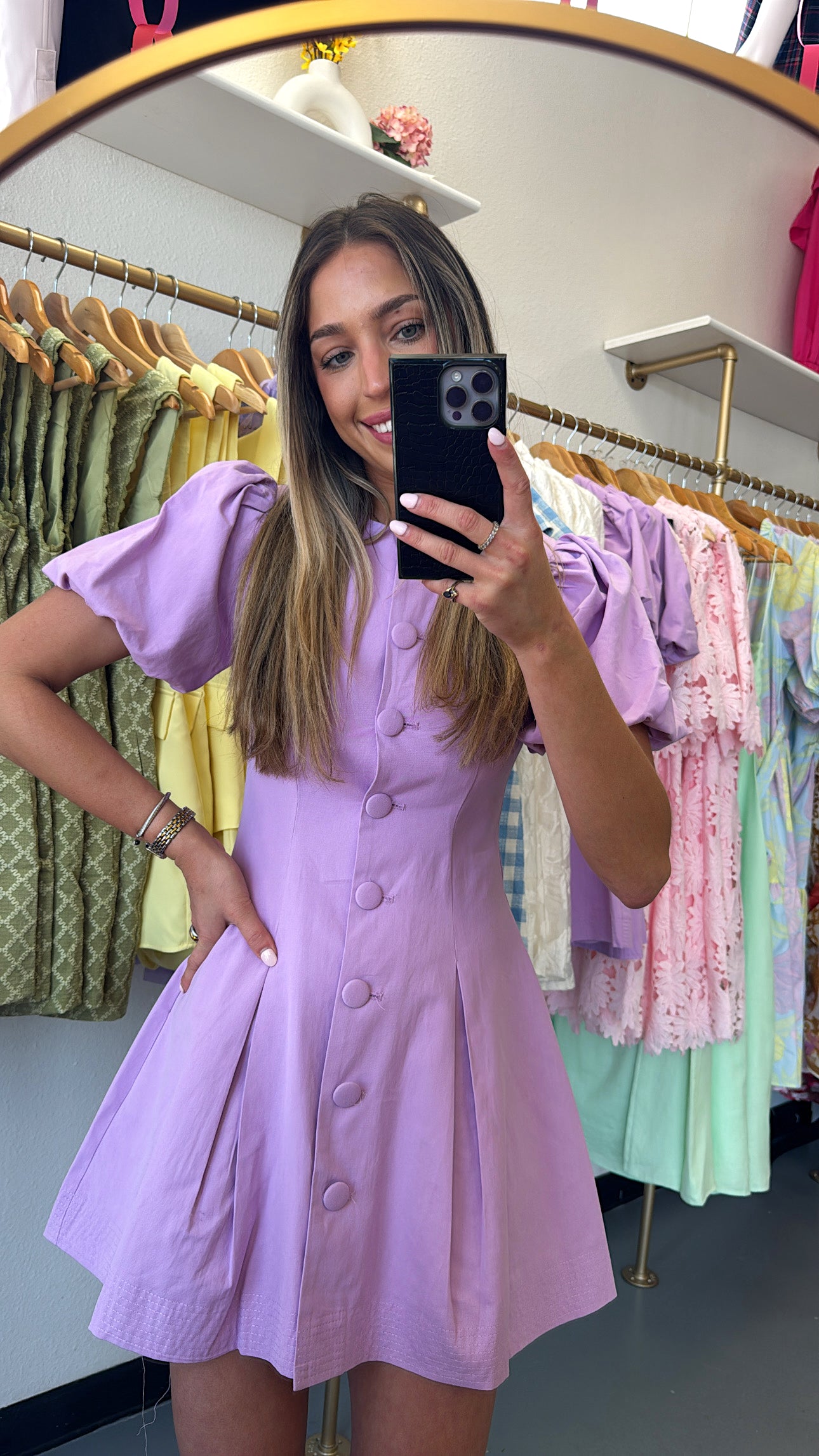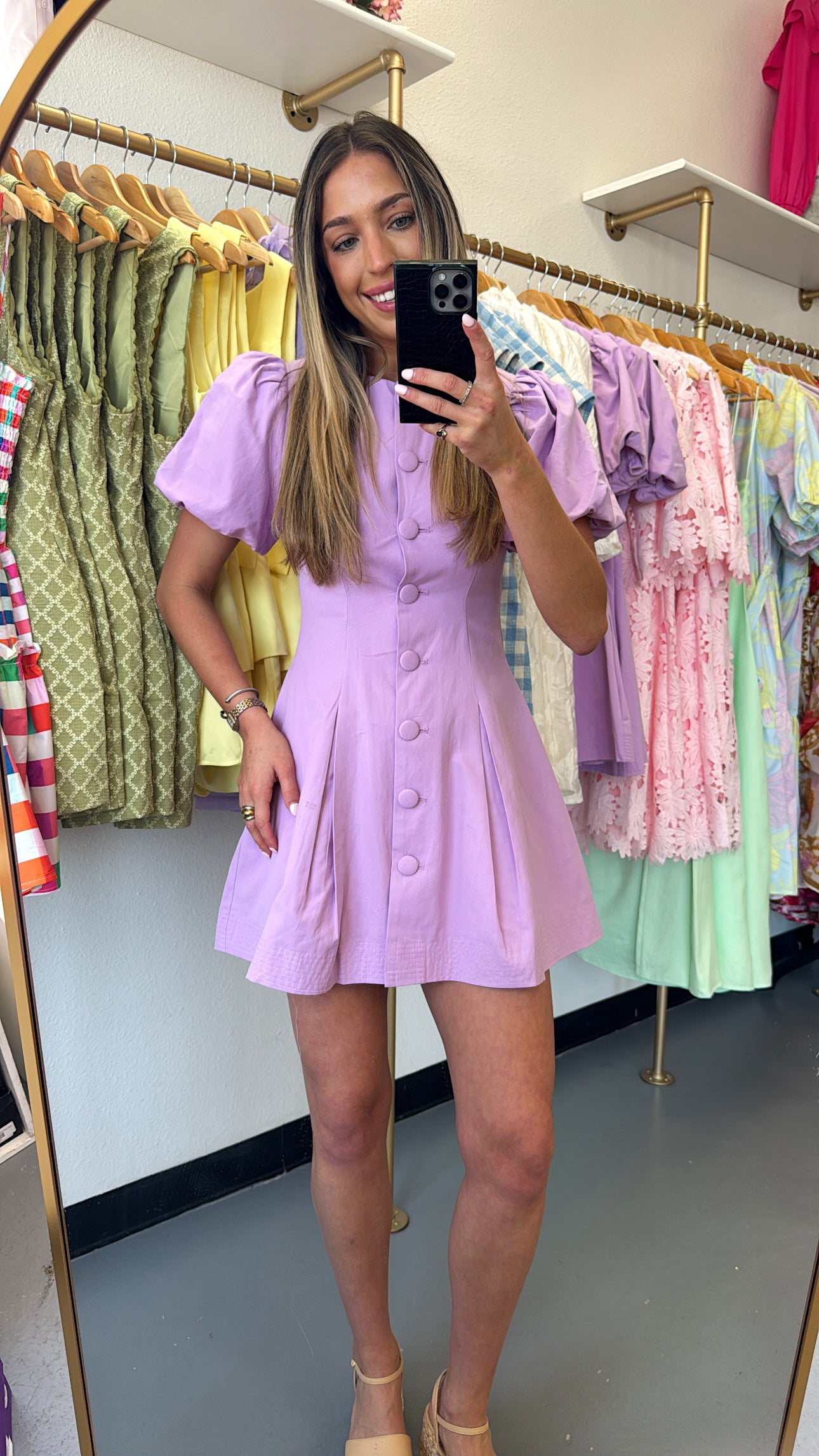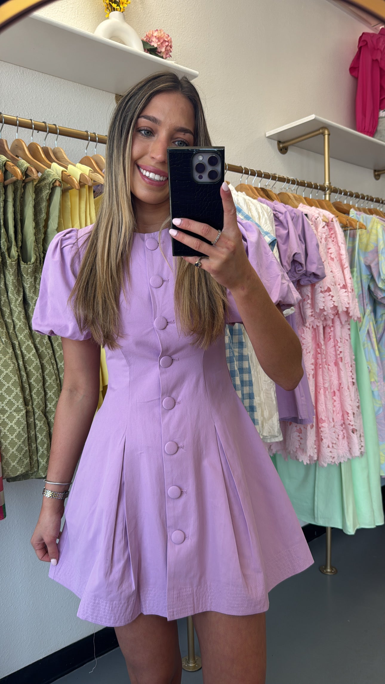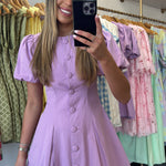 Lavender Puff Sleeve Button Down Dress