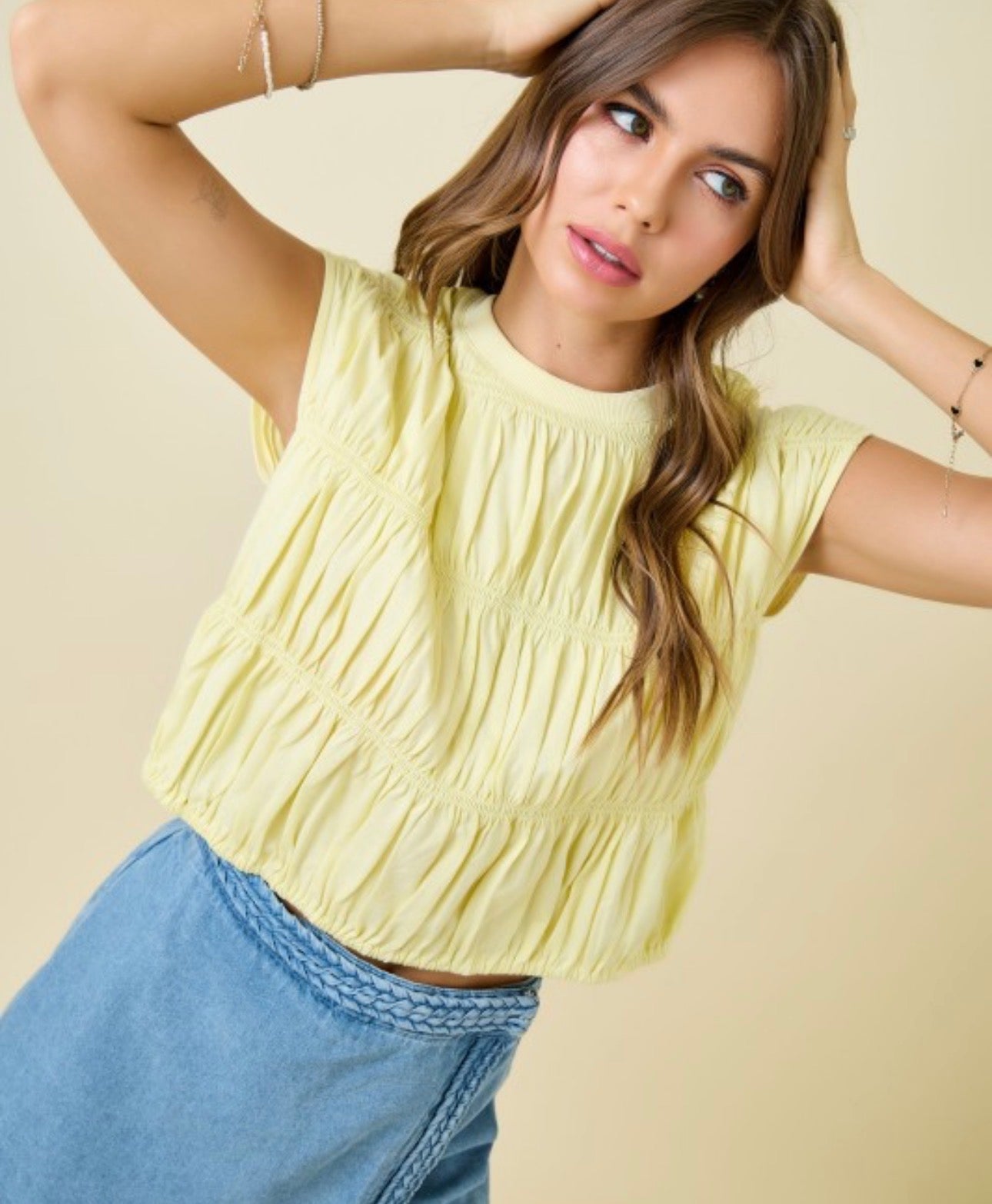 Lemon Sleeveless Tiered Top
