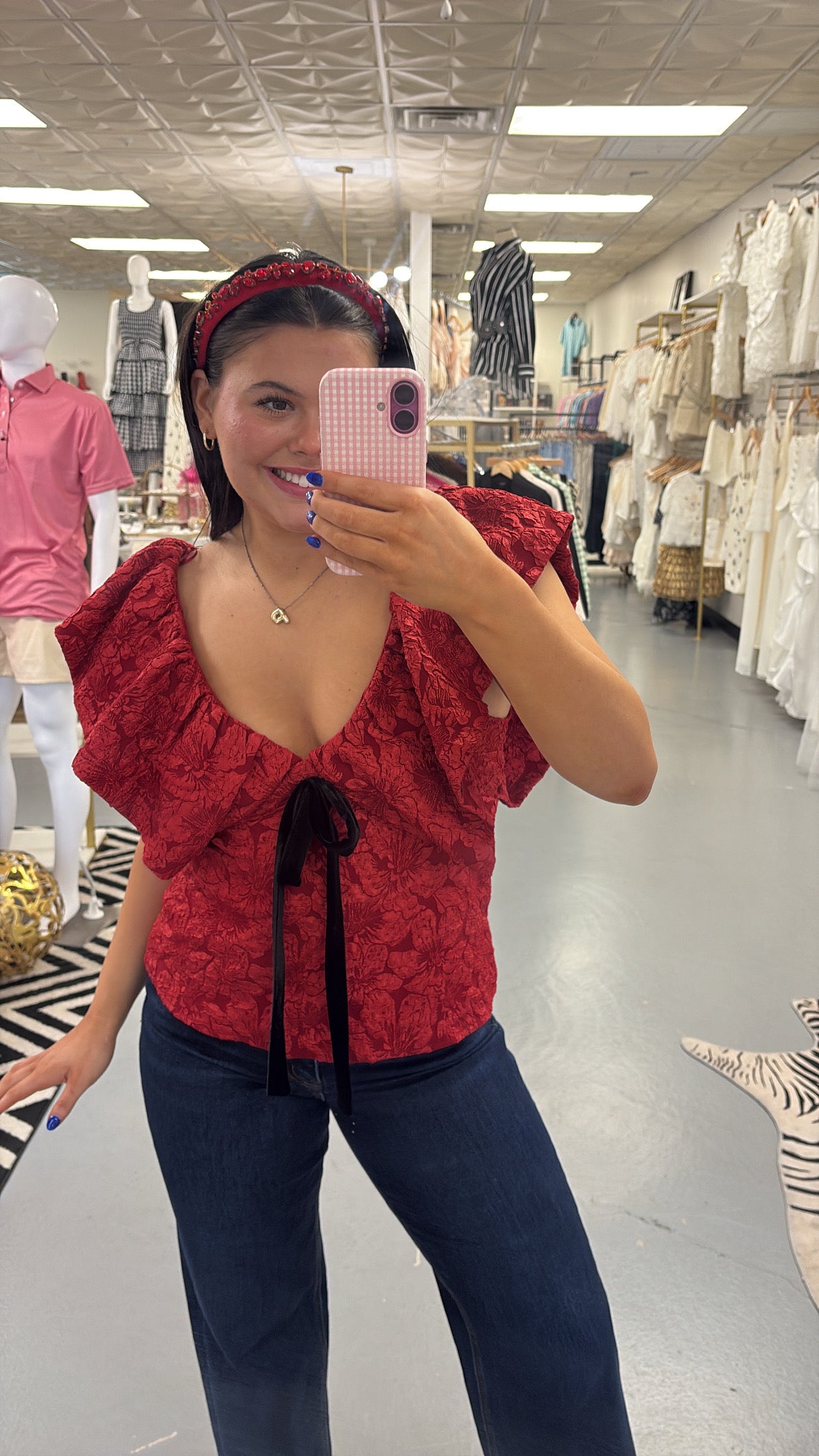 Red Bow Puff Sleeve Top