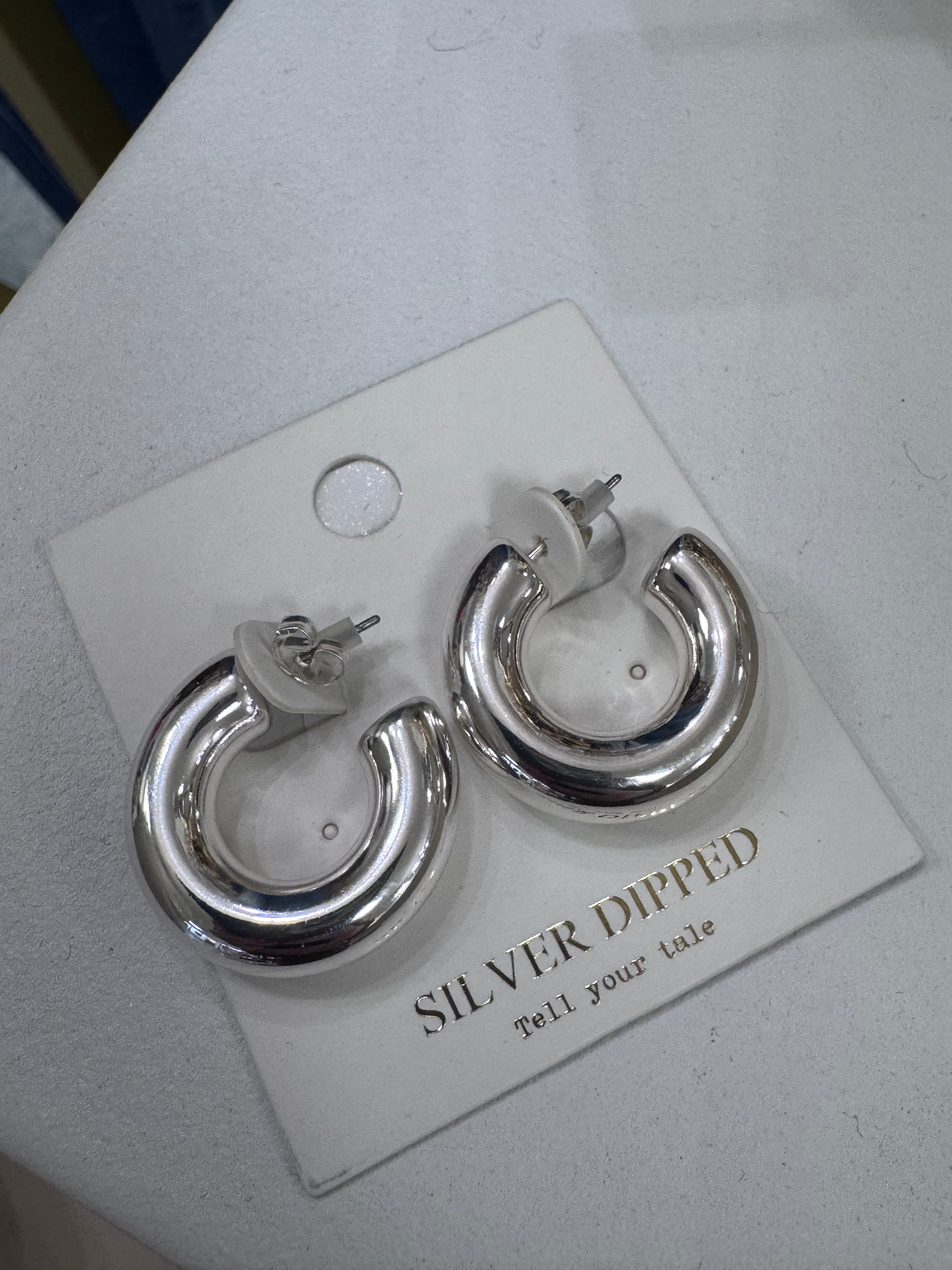 SILVER DIPPED CHUNKY HOOP EARRINGS