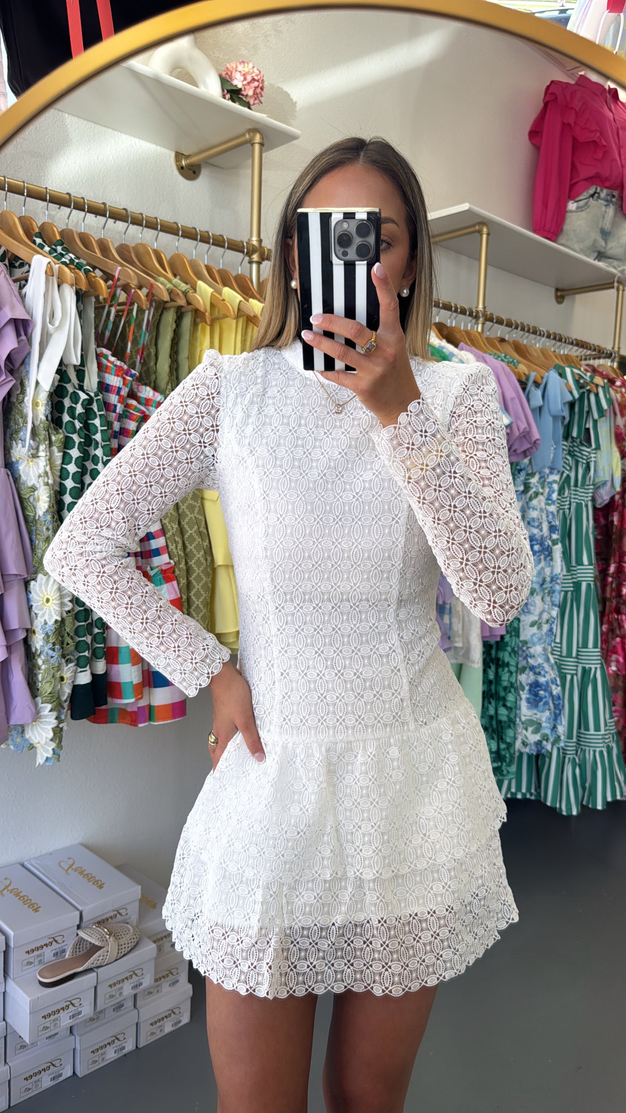 White Lace Longsleeve Mini Dress