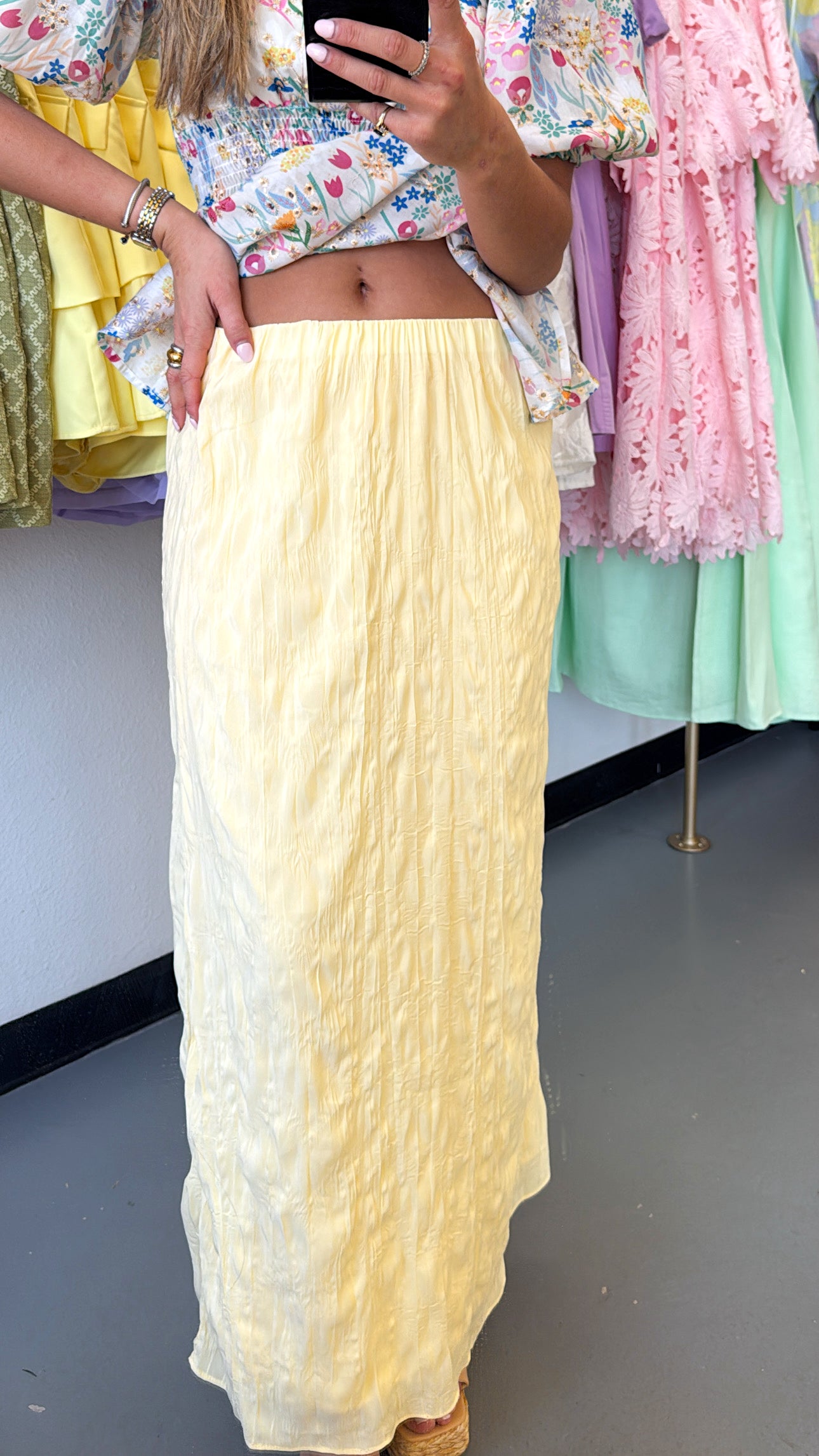 YELLOW TEXTURED FLOWY SKIRT
